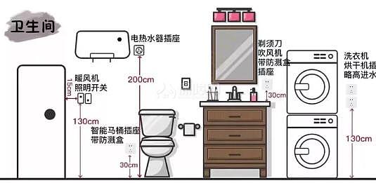 提醒:裝修衛浴時,馬桶旁邊最好留1-2個插座,日后如有安裝智能家居需求,不需要拆改,而且現在大多數人手機不離手,也方便充電。